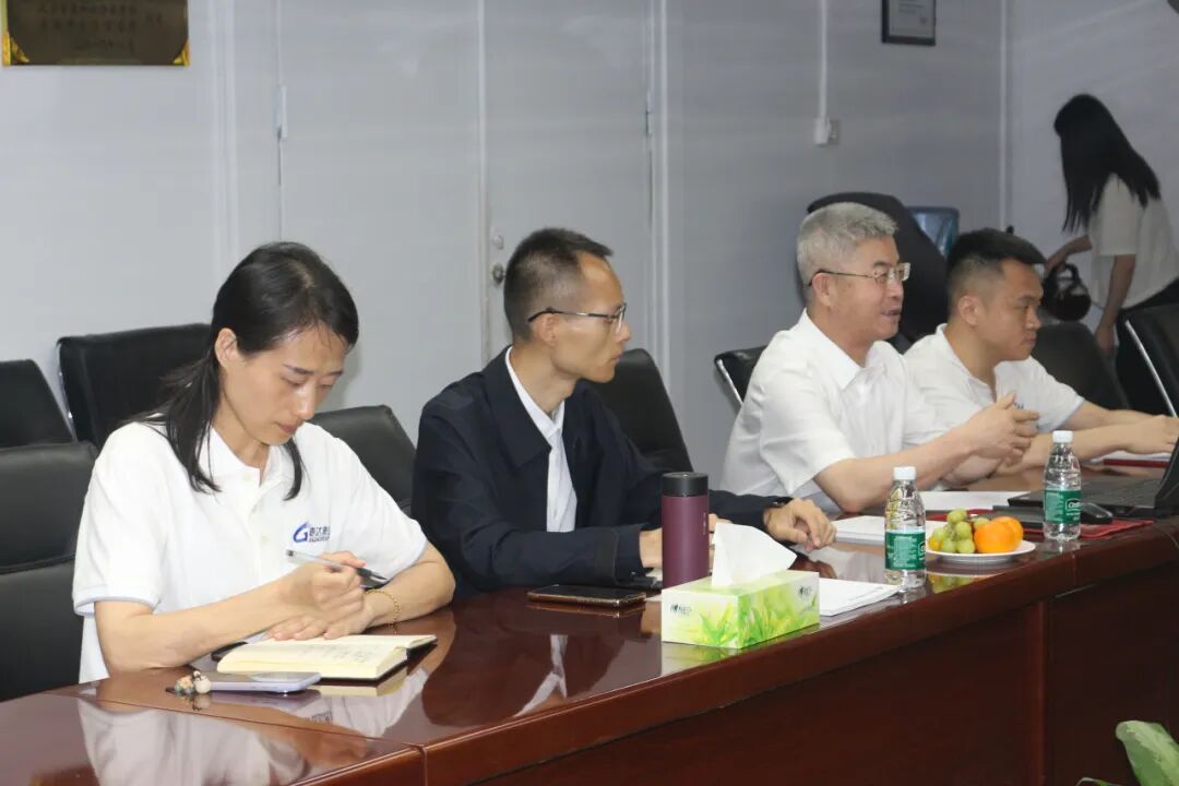 随后,双方来到嘉达会议室进行交流座谈。座谈会上,嘉达董事长熊永强对中化学南投建设杨董一行表示欢迎,并向考察团队伍介绍了嘉达集团的组织架构、荣誉资质、产品应用方向、产品特色及项目案例等。